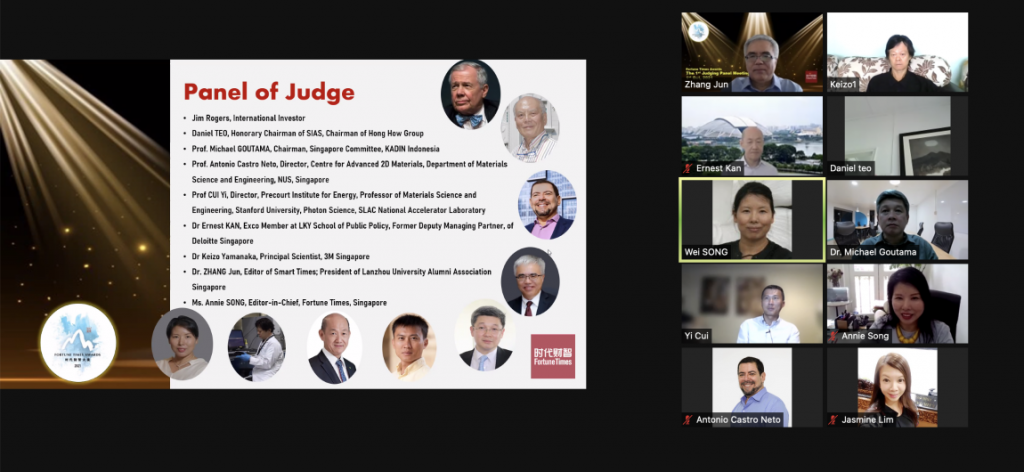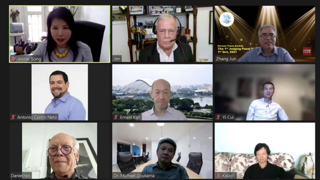 (October 1, 2021, Singapore) The Judging Panel of Fortune Times Awards 2021 held its first meeting. Nine judges from the fields of investment, scientific research and business attended the virtual meeting. They are including (without particular order)