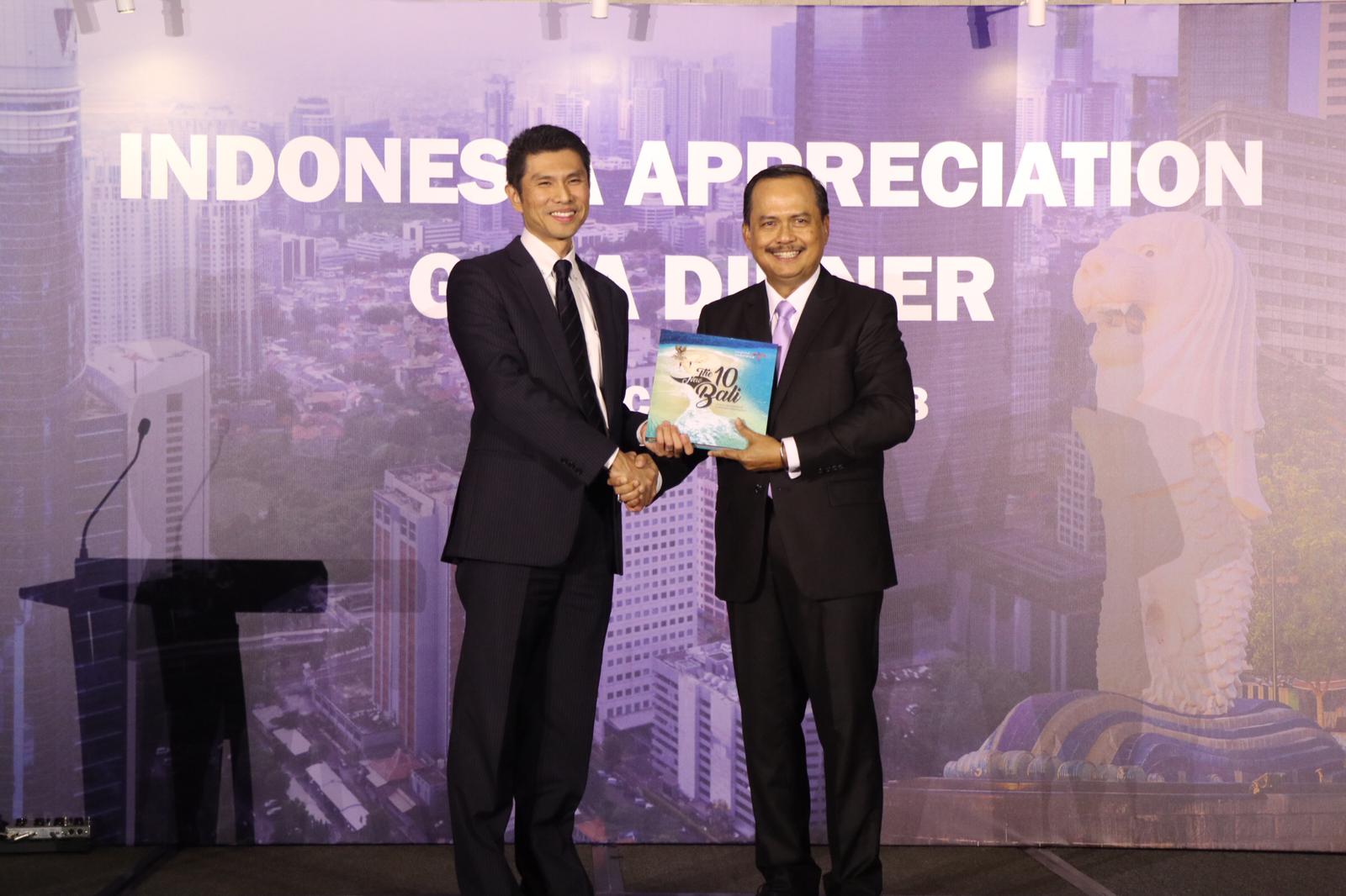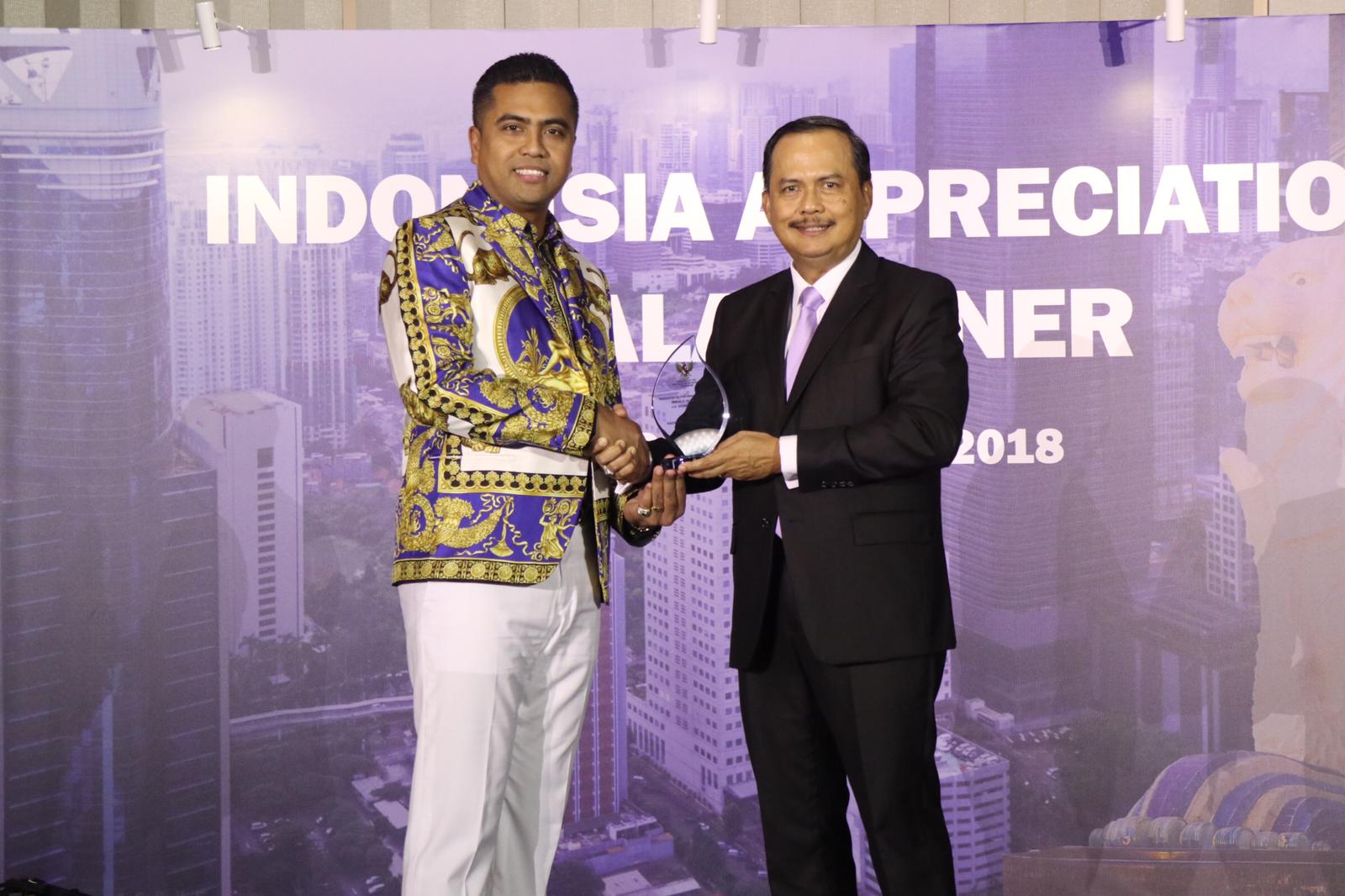 Indonesian Embassy to the Republic of Singapore presents “RI SING Appreciation Gala Dinner” to 250 investors and business people from Singapore and Indonesia yesterday at Pan Pacific Hotel Singapore.The annual event, which first held in 2017, aims to award Singaporean and Indonesian businesses that have contributed in advancing trade, tourism and investment (TTI) sector in Indonesia. The award was made as an effort for the economic diplomacy activities of the two countries, as well as strengthening the Singapore-Indonesia business community as well as diaspora by making a direct contribution to the bilateral relations of the two countries.