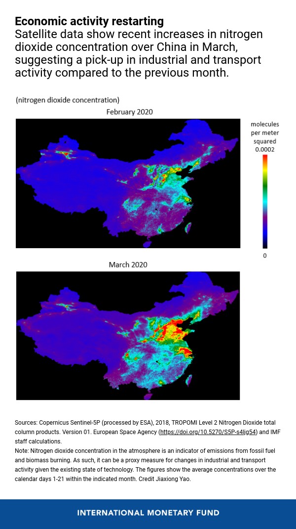 The blog also uses satellite images to the economic recovery of the world’s most populous country.
