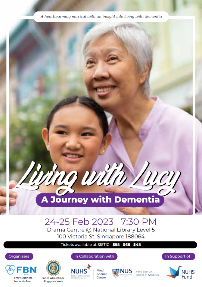 (Singapore, 22 December 2022) To raise public awareness about dementia, two non-profit organisations, Family Business Network (FBN) Asia and Inner Wheel Club (IWC) Singapore West works hand in hand, by holding “LIVING WITH LUCY ~ A Journey With Dementia” jukebox musical performance on 24 and 25 February 2023.