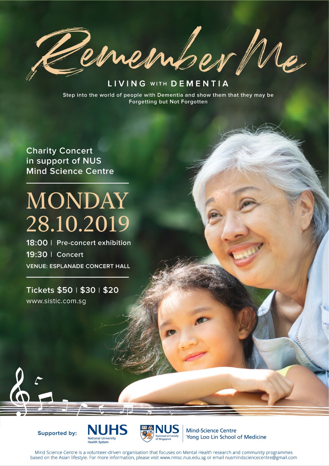Singapore will host a benefit concert called “Remember Me” in support of Dementia prevention at the Esplanade on Oct 28, 2019.