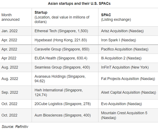(Singapore, Nov 22, 2022)At least nine Singapore and Hong Kong companies this year have announced plans to go public with SPACs listed in US instead of their own cities, according to data released by Refinitiv.