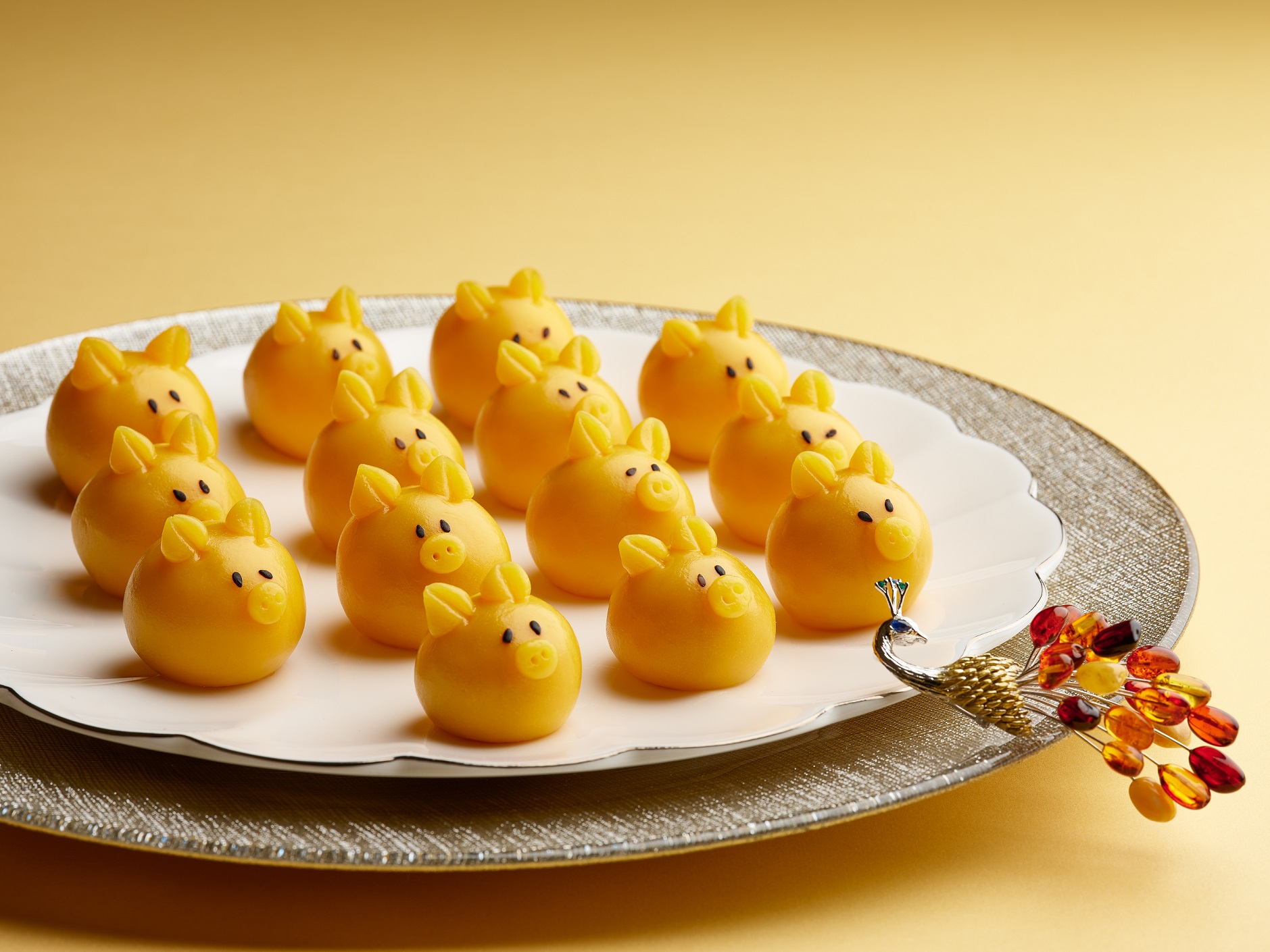 Moulded into the shape of adorable piglets, the Piglet-shaped Nian Gao (猪仔年糕) takes inspiration from the yellow-orange colour of amber, which is formed through the fossilisation of tree resin and said to have healing powers. Each piglet, handmade by Dim Sum chefs, contains sweet and soft nian gao wrapped in yellow-orange coloured skin that is derived naturally from pumpkin. Only available in set menus at TOP of Plaza.