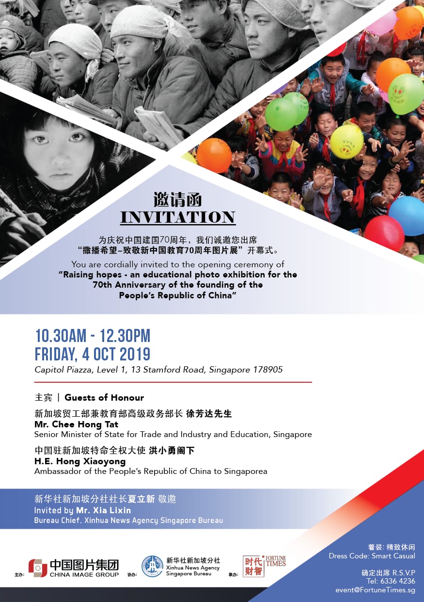 The photo exhibition, the first of its kind in Southeast Asia, is part of China’s celebrations to mark the 70th anniversary of the founding of the People’s Republic of China. It is organized by the China Image Group and Xinhua News Agency’s Singapore Bureau. Visitors will be able to see 70 pictures that reflect the country’s educational development in three stages from 1949 to 2019.