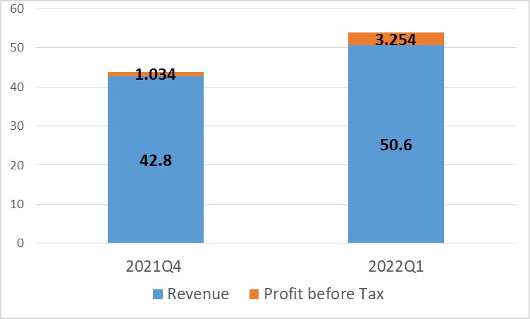 The conglomerate earned a pre-tax profit of RM325.4 million in the current quarter, up from RM103.4 million in the previous quarter ended June 30, 2021. (Q4 2021). Revenue increased 18% to RM5.06 billion in Q1 2022, up from RM4.28 billion in Q4 2021.