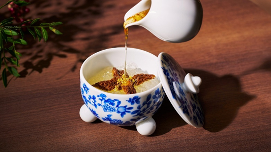 At Jin Ting Wan, Executive Chef Albert Li unveils a seasonal mushroom tasting menu featuring rare finds like Ganba Fungus and Matsutake, woven into dishes such as Double-Boiled Bird’s Nest with Morel Mushroom and Honey, and Fried Rice with Ganba Fungus and Honey Pea.