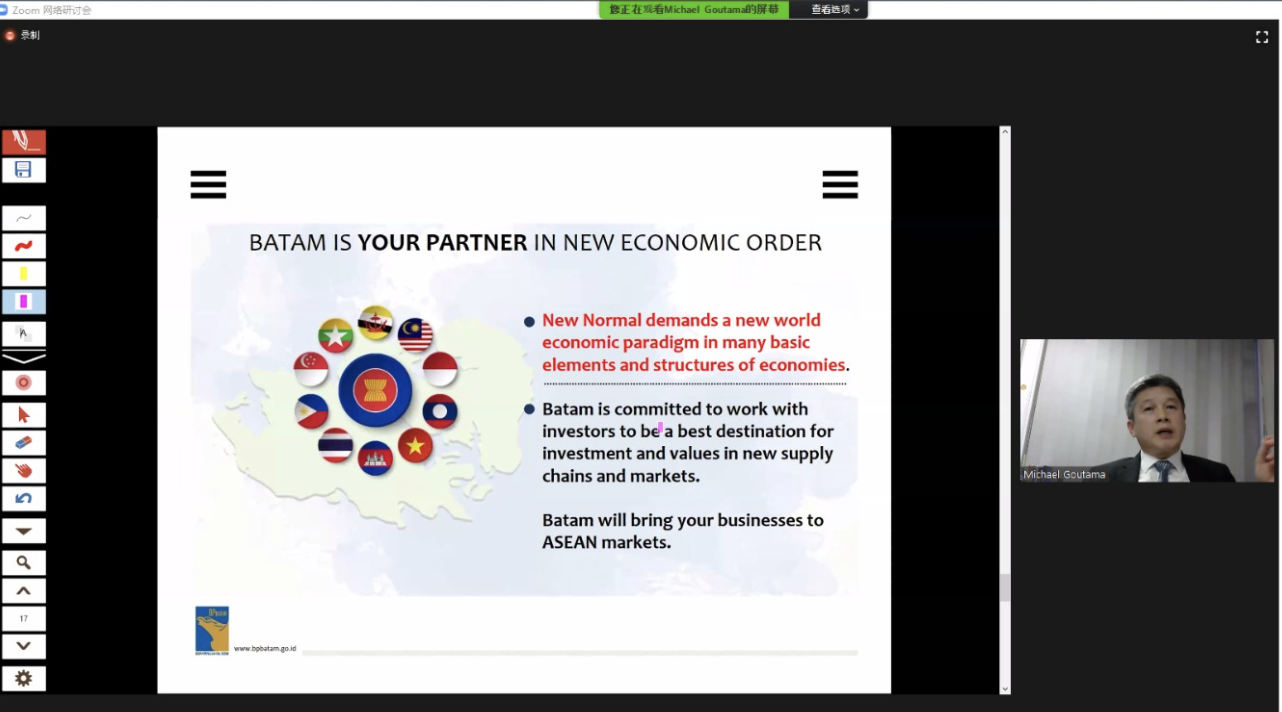 Dr. Michael Goutama, special advisor to the Coordinating Minister for Maritime Affairs and Investment of the Republic of Indonesia emphasised on the key strengths of Indonesia, specifically Batam, as the best destination for investment and trade, in that Batam is the gateway to Association of Southeast Asian Nations (ASEAN) economic community.