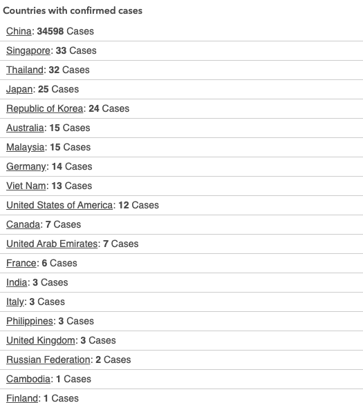 Singapore, with its 33 confirmed cases, is now home to the second-largest number of confirmed cases outside the Chinese mainland.