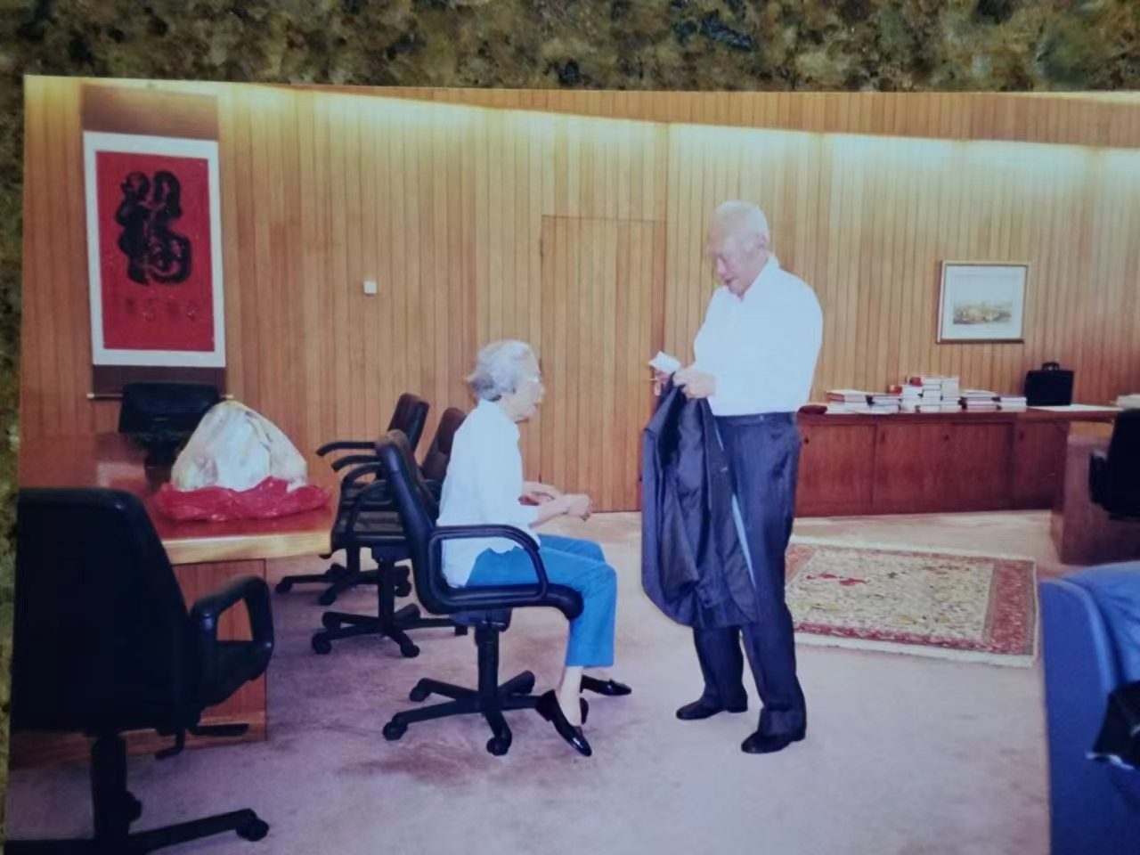 I will always remember him in that red/black Chinese styled top that he wore so often and claimed that it was his favourite! That ‘reversible’ Chinese-styled silk jacket that I designed and made for him was, and still is the pride of my life!