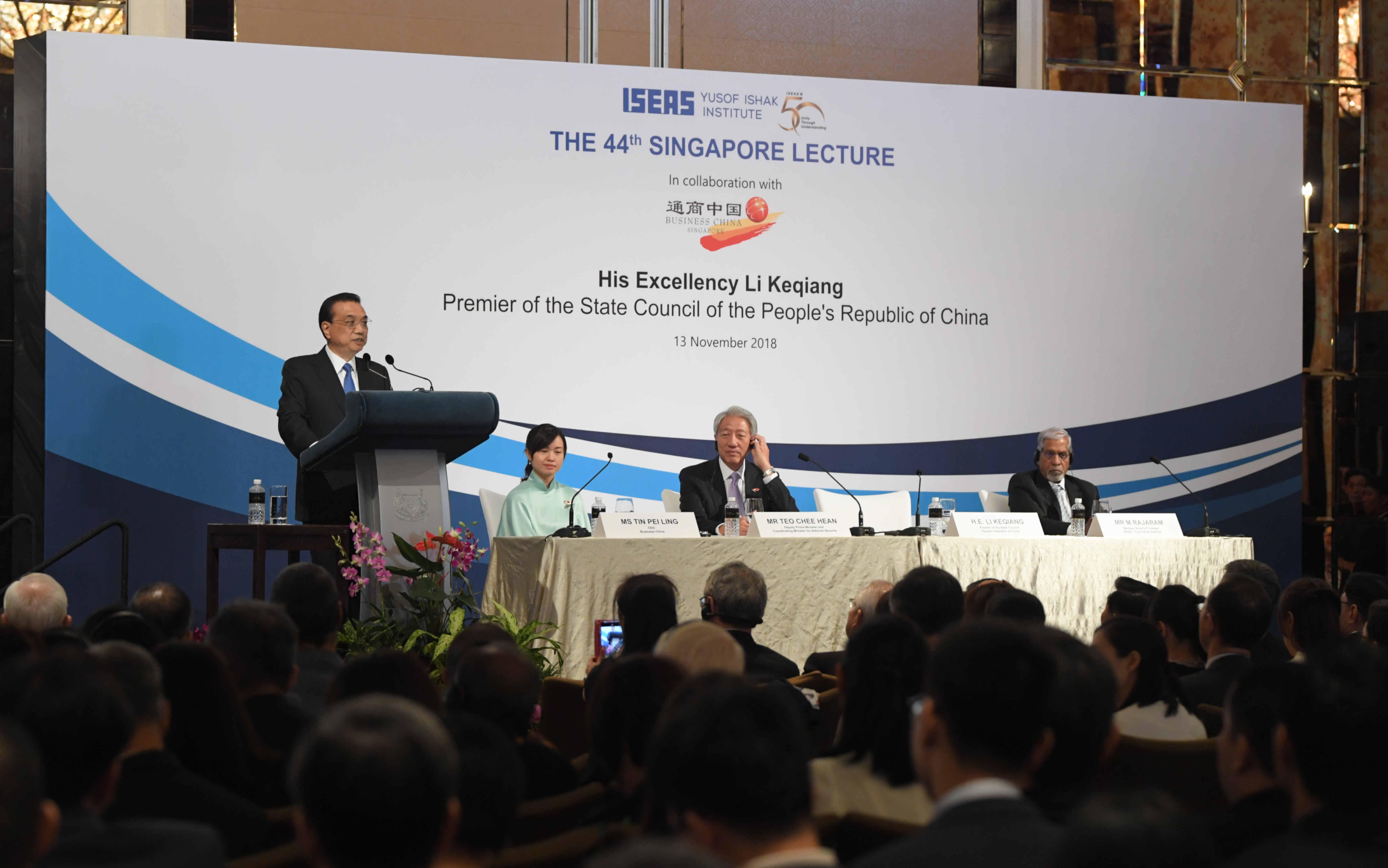 The lecture, organised by ISEAS – Yusof Ishak Institute, in collaboration with Business China, also drew nearly 100 reporters from some 40 local and international media companies.