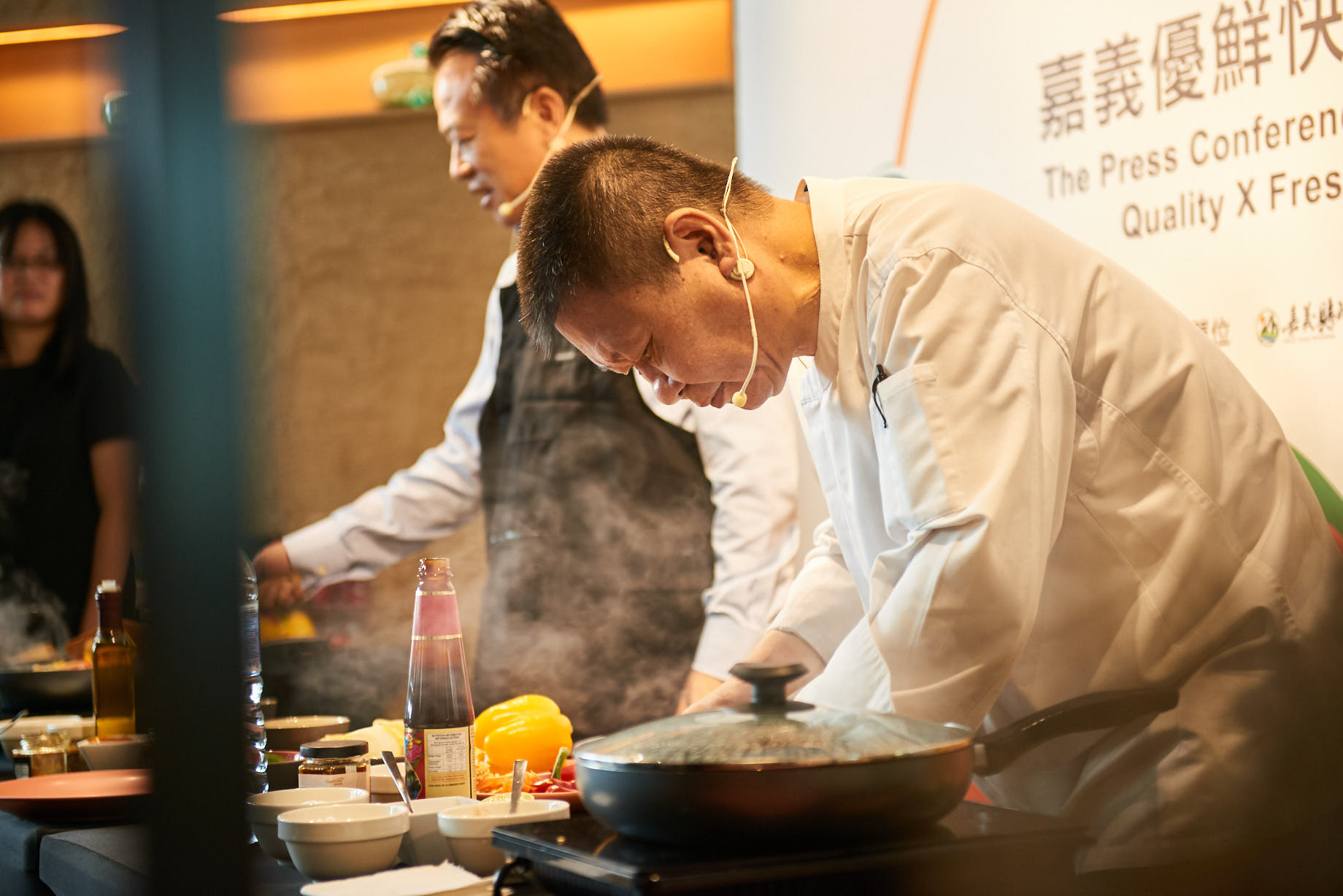 At the press conference, Weng turned into “Aliang Master”, worked with Mr Ho Tien Tsai, Singapore’s celebrity chef, using natural flavors and organic peppers, tomatoes, and mushrooms as ingredients to make “Caviar” cuisine.