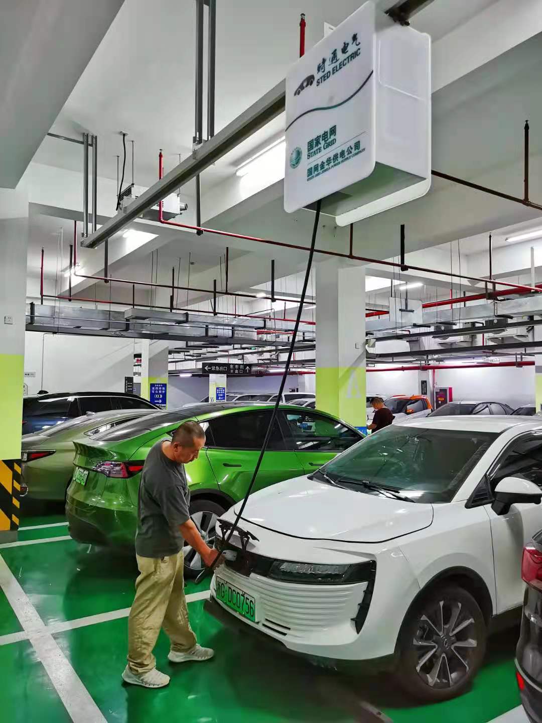 As one of the landmarks of Jinhua, Wanfo Pagoda is known as “the No. 1 pagoda in Zhejiang” with its exquisite Buddha statues, and it is a popular site attracting tourists from adjacent cities. In order to facilitate the new energy vehicle owners’ trip to this pagoda, the State Grid Jinhua Power Supply Company has installed newly-developed ceiling-mounted movable charging piles, smart mobile charging robots and mobile charging-and-storage machines in the pagoda site’s underground garage, which really impresses the tourists.