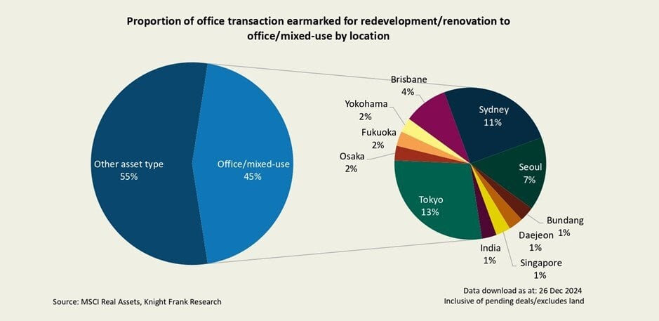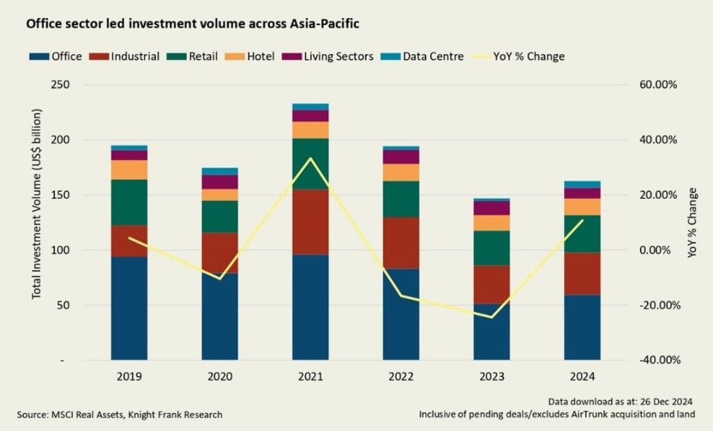 (Singapore, 23 Jan 2025)Asia-Pacific’s office sector offers compelling opportunities for value-add investments, according to Knight Frank Asia-Pacific’s latest outlook report, Charting new horizons – 25 trends shaping 2025. The report features its 25 key significant developments across sectors trends.
