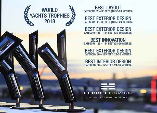 Awards record for Ferretti Group in occasion of the World Yachts Trophies 2018, the expected appointment closing the Cannes Yachting Festival that, even this year, rewarded with 6 prizes the unique Made in Italy style and the many design and technology innovations offered on board.