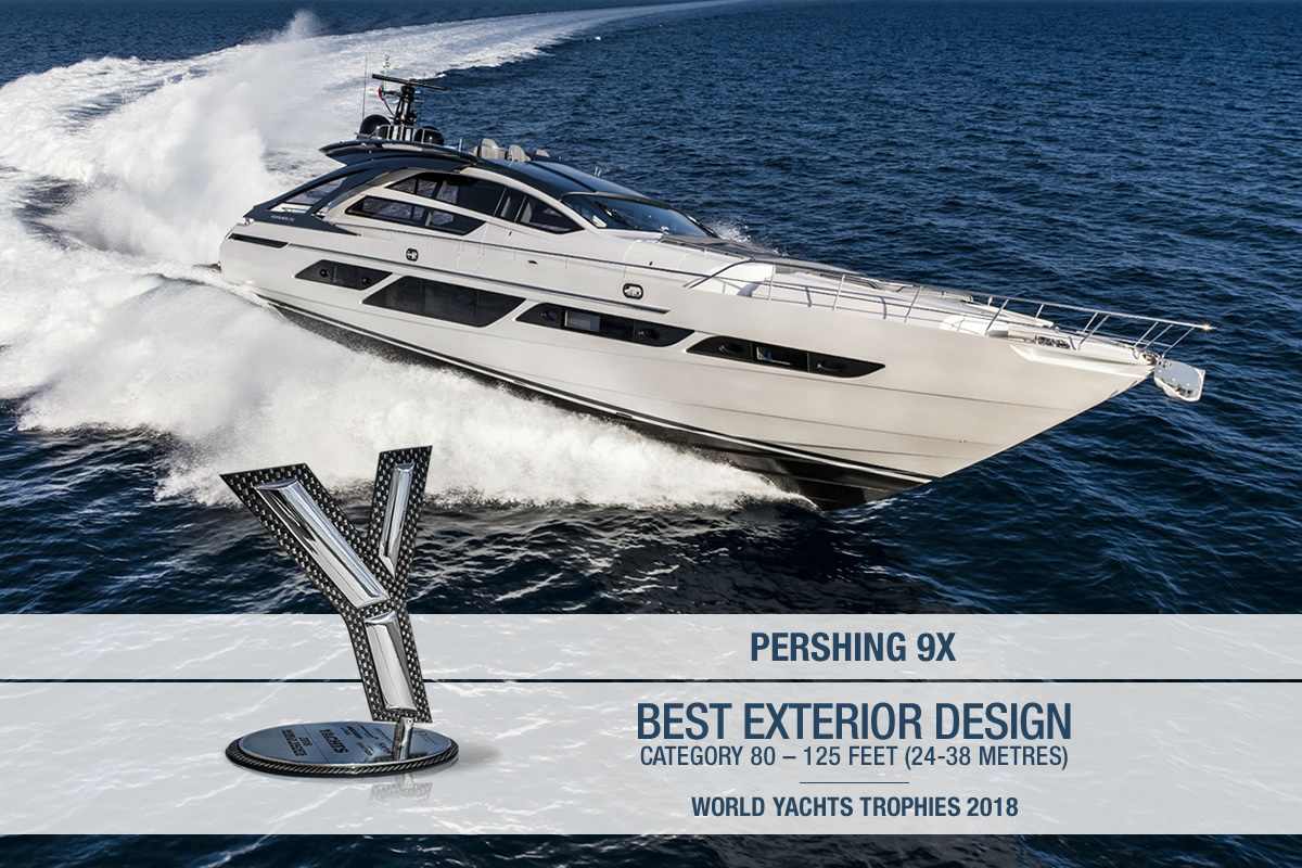 - Pershing 9X: Best Exterior Design Trophy, category 80 – 125 feet (24-38 metres)