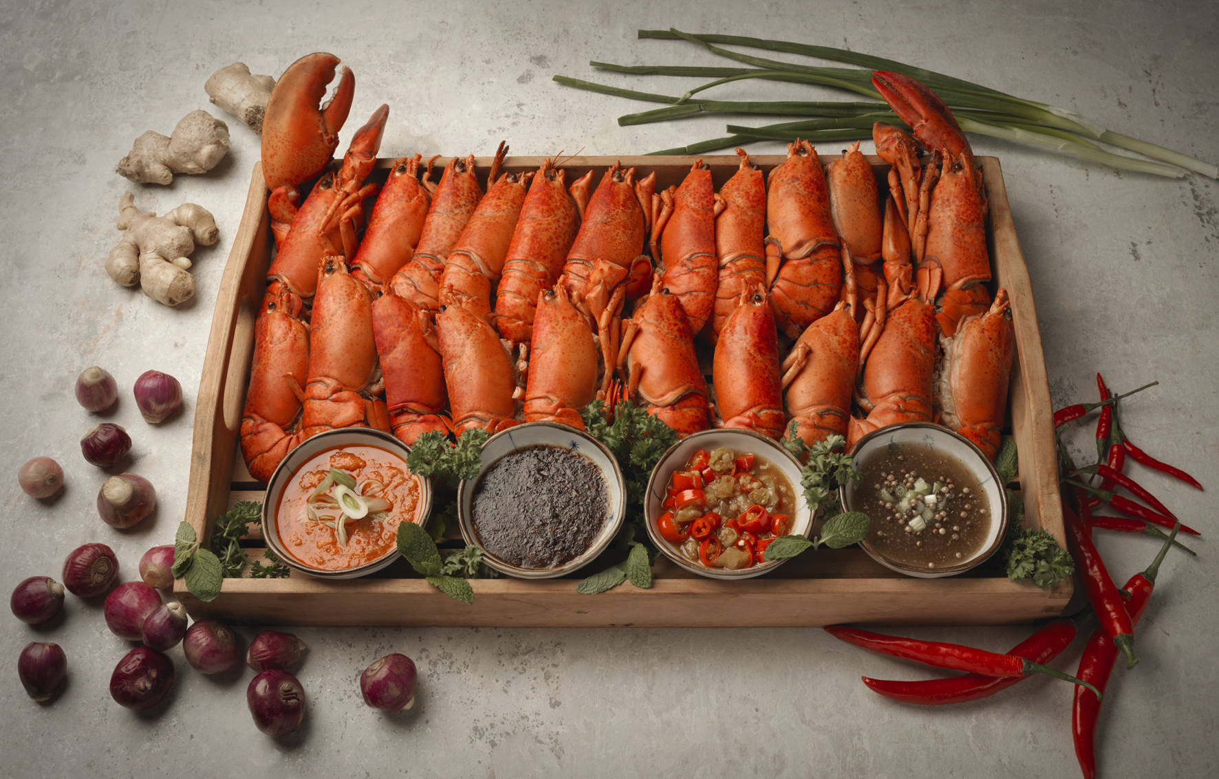 Served alongside the lobsters are 30 dishes prepared à la minute, including dishes not available on the regular à la carte menu, such as the tangy Boiled Sliced Fish in Preserved Chilli Broth and the Crispy Fish Skin with Salted Egg.