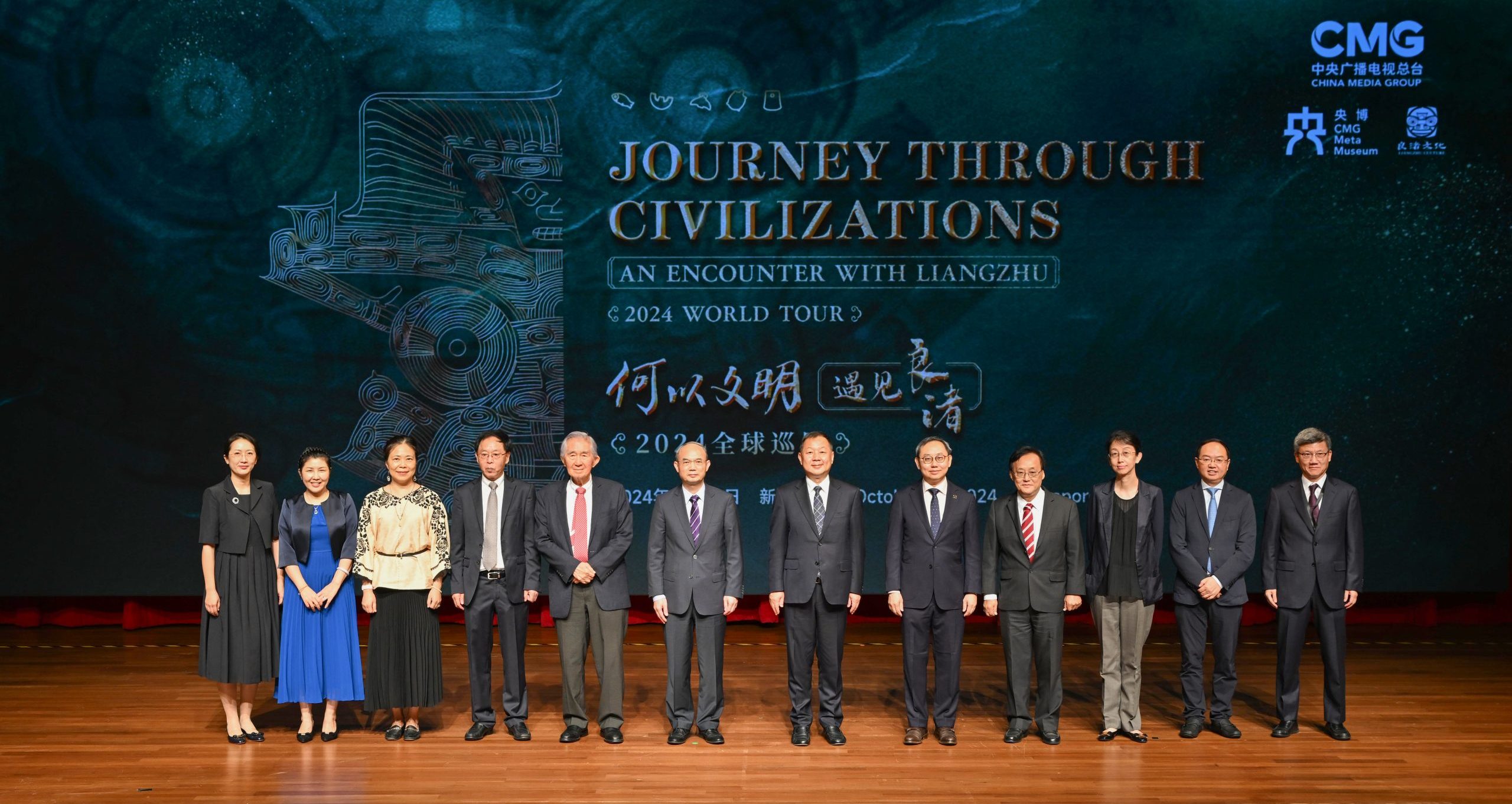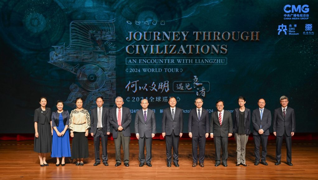(Singapore, 19 Oct) “Journey Through Civilizations, an Encounter with Liangzhu”, 2024 Global Tour Singapore Special Exhibition, jointly organized by China Media Group Asia-Pacific Station, the China Cultural Centre in Singapore, the Liangzhu Archaeological Site Management Committee in Hangzhou, and the CMG Meta Museum, opened at the China Cultural Centre in Singapore.
