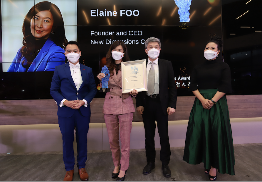 (Singapore, 26 Nov 2021)Through 3 months’ nomination and selection, Fortune Times, a Chinese business magazine in Singapore, held the hybrid award ceremony for the 7th Annual Fortune Times Awards on 25 November 2021 at Distrii Singapore. Elaine Foo, Founder and CEO of New Dimensions Capital has been awarded the “ASIA’S WOMEN EMPOWERMENT AWARD” at the 2021 Fortune Times Awards Ceremony.