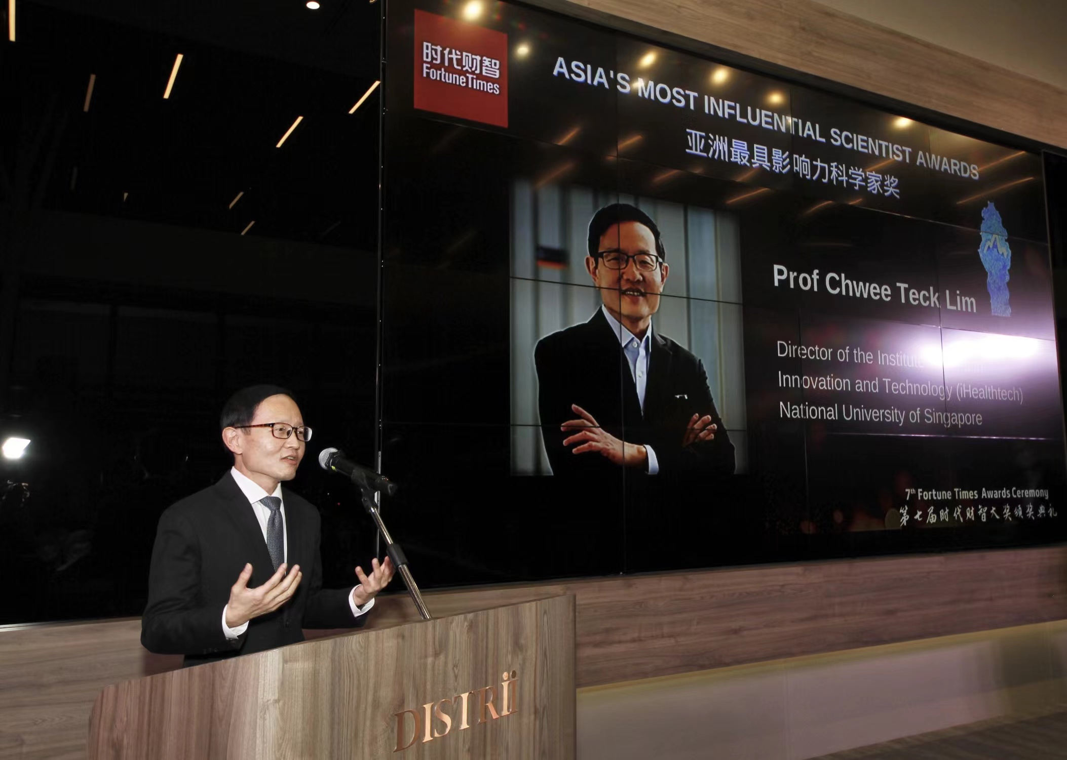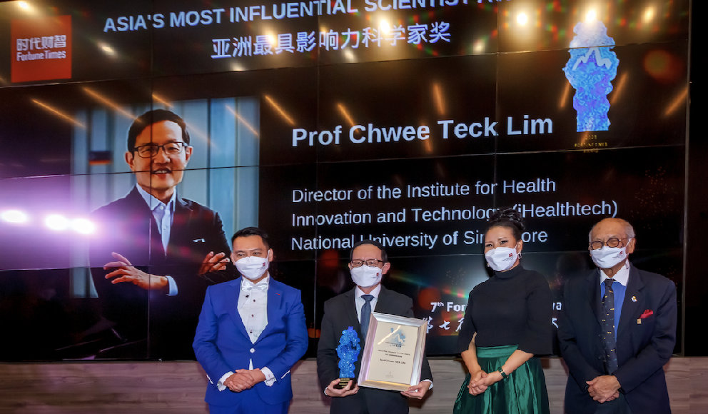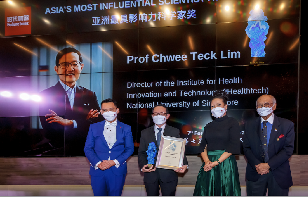 (Singapore, 26 Nov 2021)Through 3 months’ nomination and selection, Fortune Times, a Chinese business magazine in Singapore, held the hybrid award ceremony for the 7th Annual Fortune Times Awards on 25 November 2021 at Distrii Singapore. Professor Chwee Teck LIM, director of the Institute for Health Innovation and Technology (iHealthtech) of NUS, has been awarded the “ASIA’S MOST INFLUENTIAL SCIENTIST” at the 2021 Fortune Times Awards Ceremony.